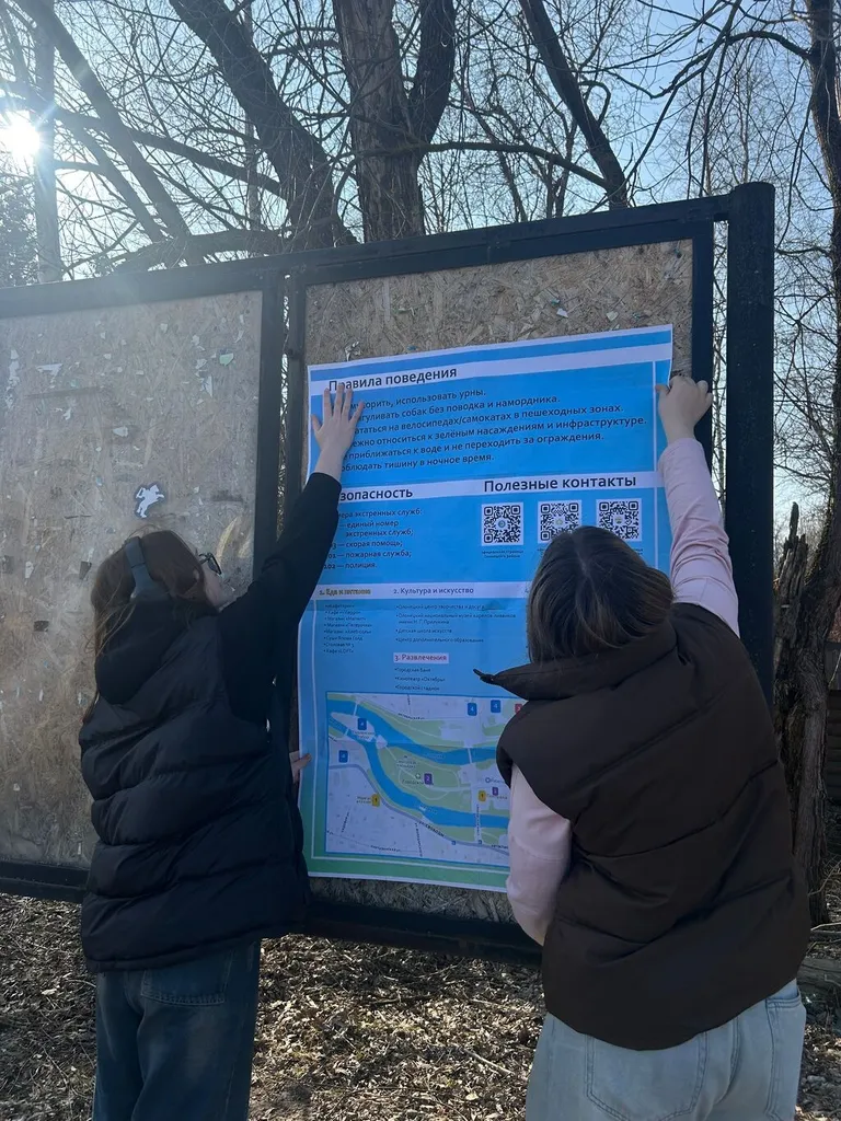 В рамках задания «Первые вместе» активисты Центра творчества и досуга Олонец перешли от планирования к активным действиям - ребята взялись за благоустройство и информационное оснащение подшефного объекта - городской набережной.